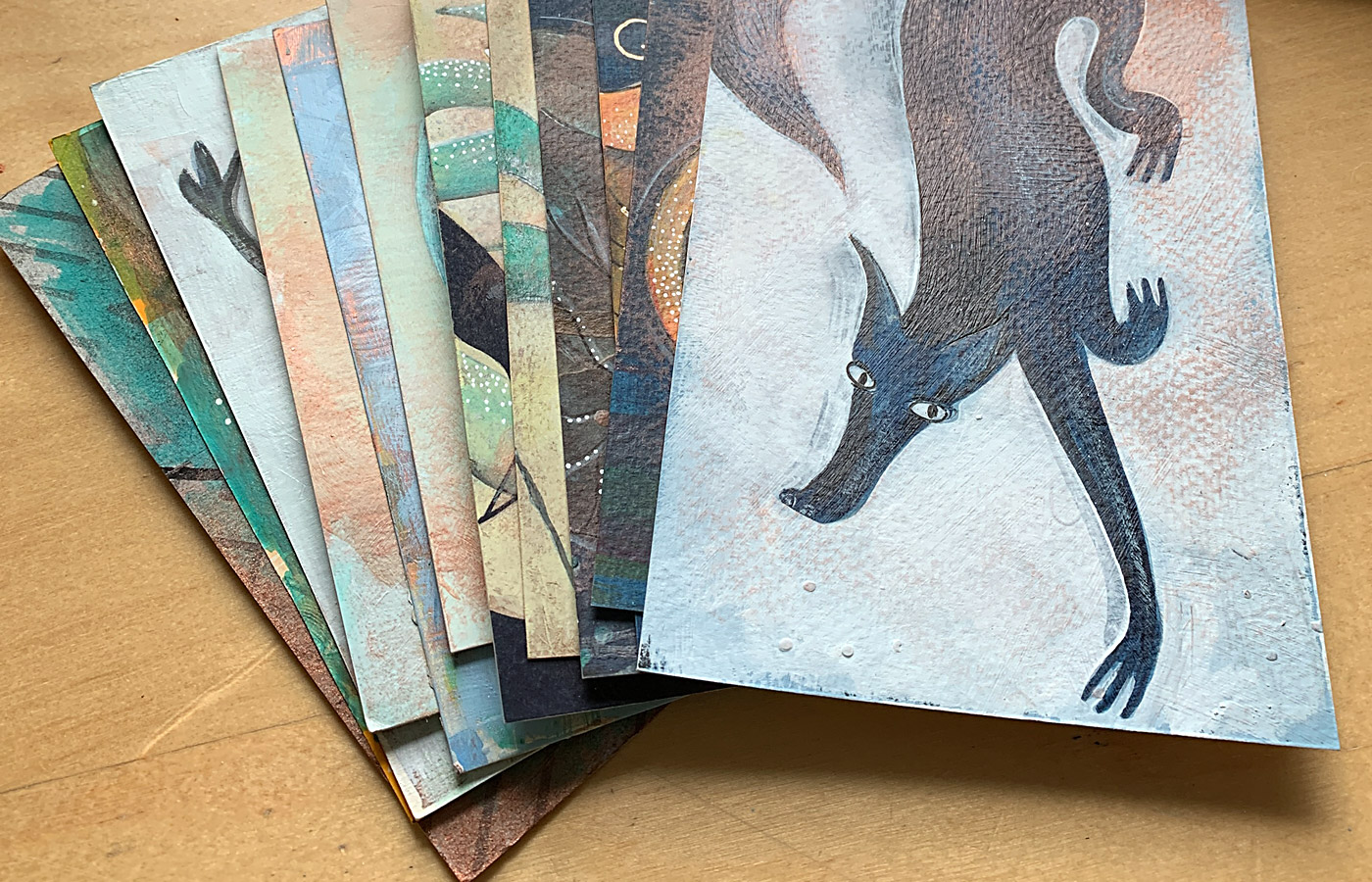 These are the last illustrations made for the #postcardswap2019. This time around, I wanted to explore new ways of building layers of textures.
