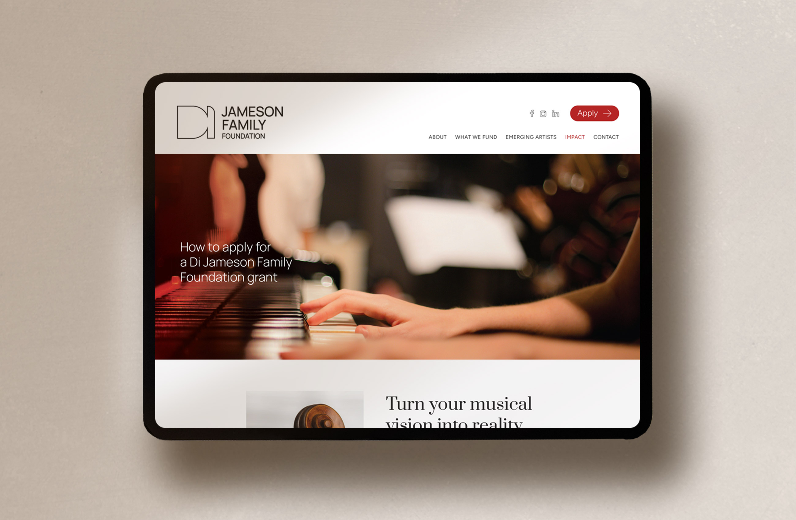 Di Jameson Family Foundation DATCHA WEB : design et programmation CLIENT: Di Jameson Family FoundatioonPLATEFORME : WordPressLancement en février 2026 AllEn développementEn ligne Di Jameson Family Foundation David Jalbert, pianiste Jane Hope, Designer & Writer Denise Djokic, contrebassiste Allyson McHardy, mezzo-soprano Langevins La Datcha : céramique et illustration Jean-Michel Malouf, chef d’orchestre Agence Blanche Servenay
