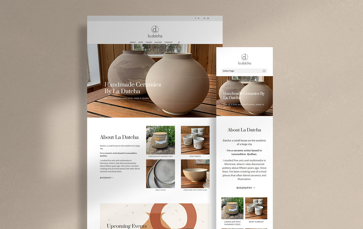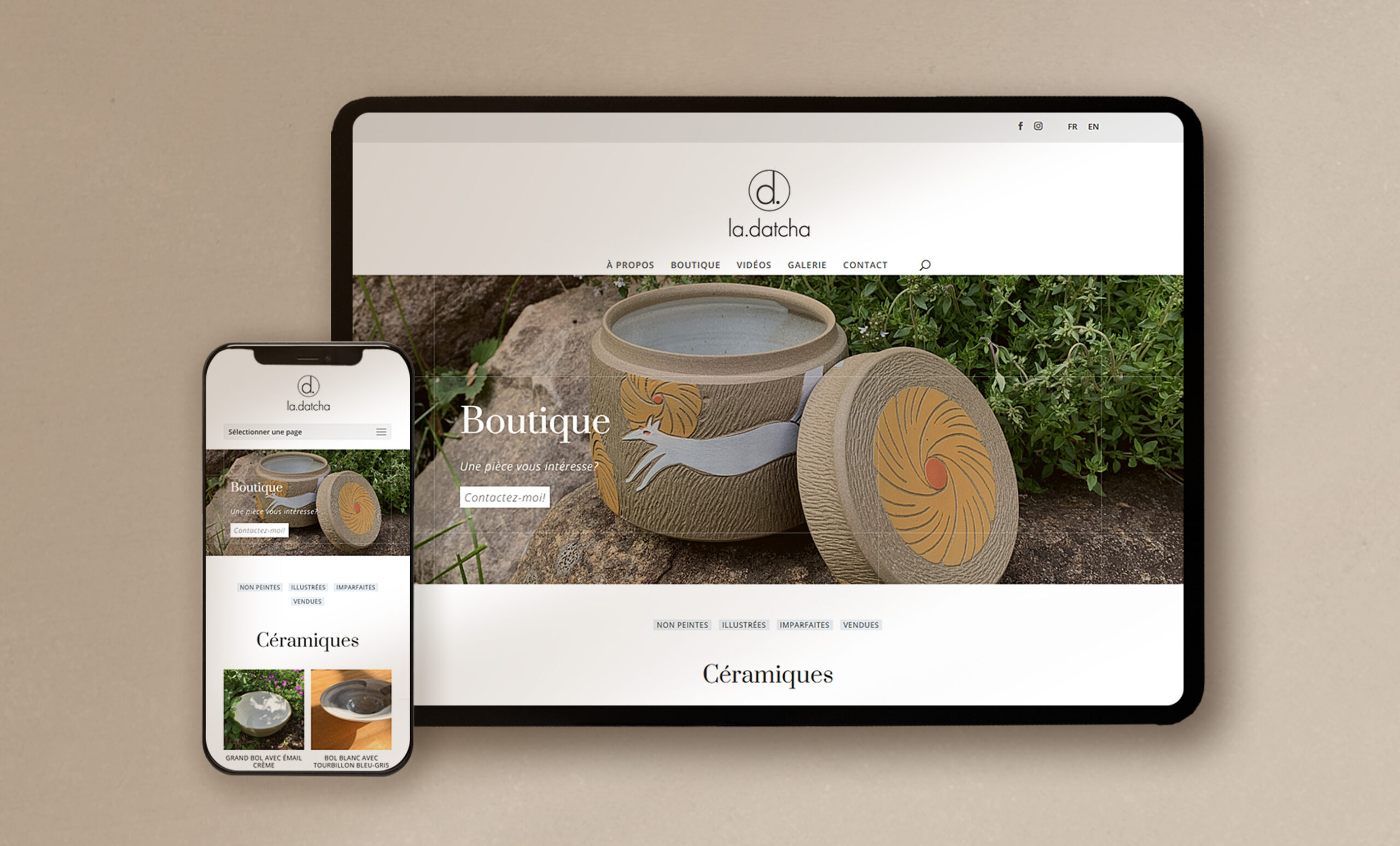 La Datcha, céramique et illustration DATCHA WEB : design et programmation CLIENT : Julie LapointePLATEFORME : WordPressdatcha.ca/la_datcha AllEn développementEn ligne Di Jameson Family Foundation David Jalbert, pianiste Jane Hope, Designer & Writer Denise Djokic, contrebassiste Allyson McHardy, mezzo-soprano Langevins La Datcha : céramique et illustration Jean-Michel Malouf, chef d’orchestre Agence Blanche Servenay