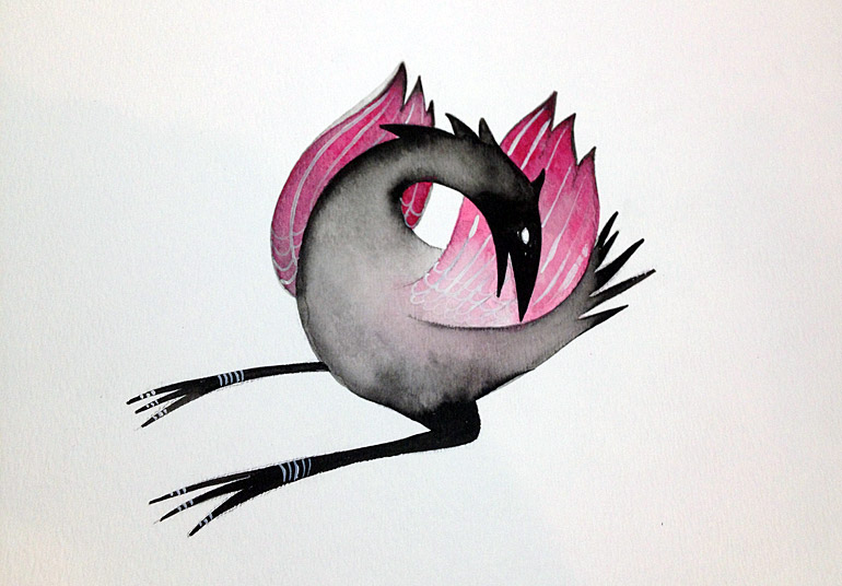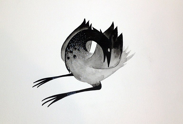 Acrylic on paper, 2014 Acrylic on paper, 2014A souvenir from a few years ago, at the Lac des sept frères, in the Vérendrye Park in Quebec. We went canoe-camping for a few days. Even if I like winter, I sometimes dream of swimming in a big deep blue lake early in the morning, while the loons are singing…
