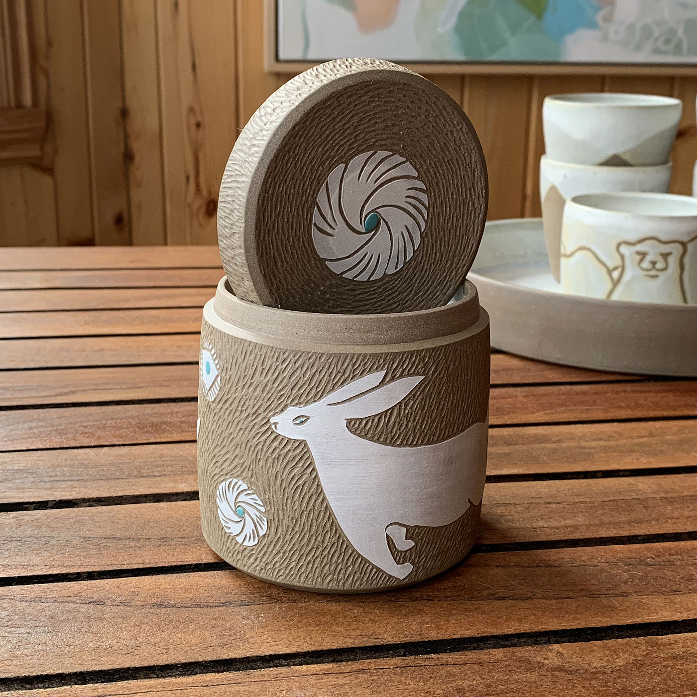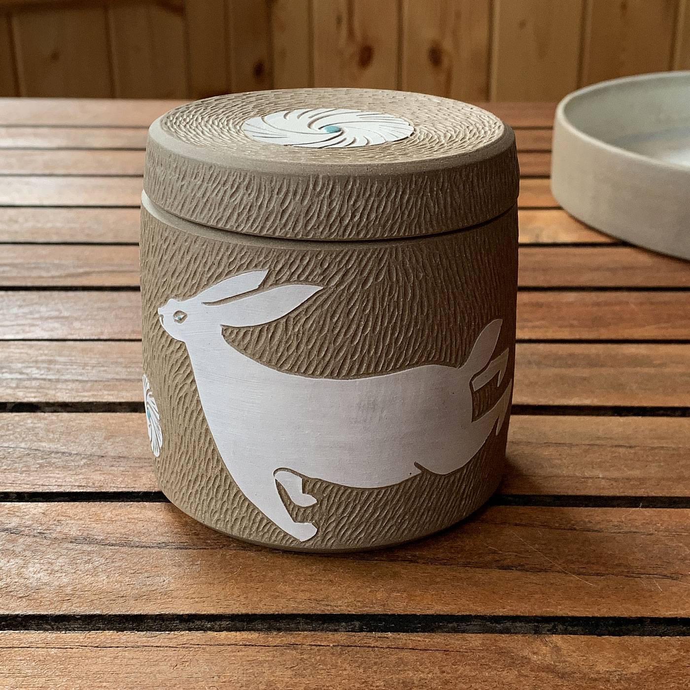 Boite avec couvercle, lièvre et fleurs