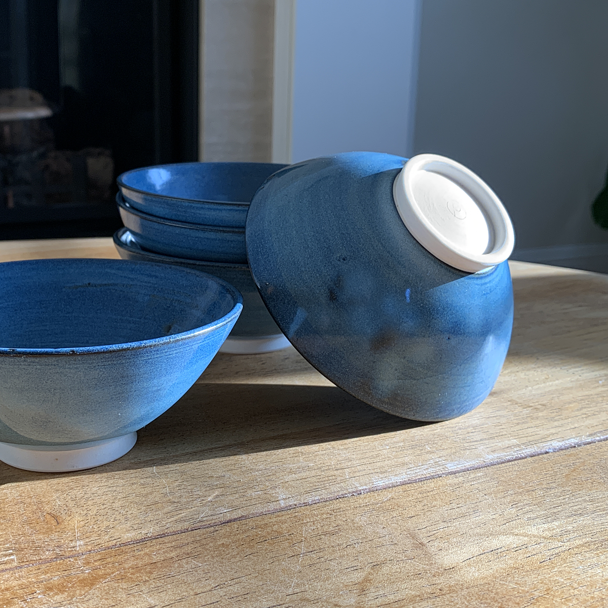 Petits bols bleus avec pied blanc