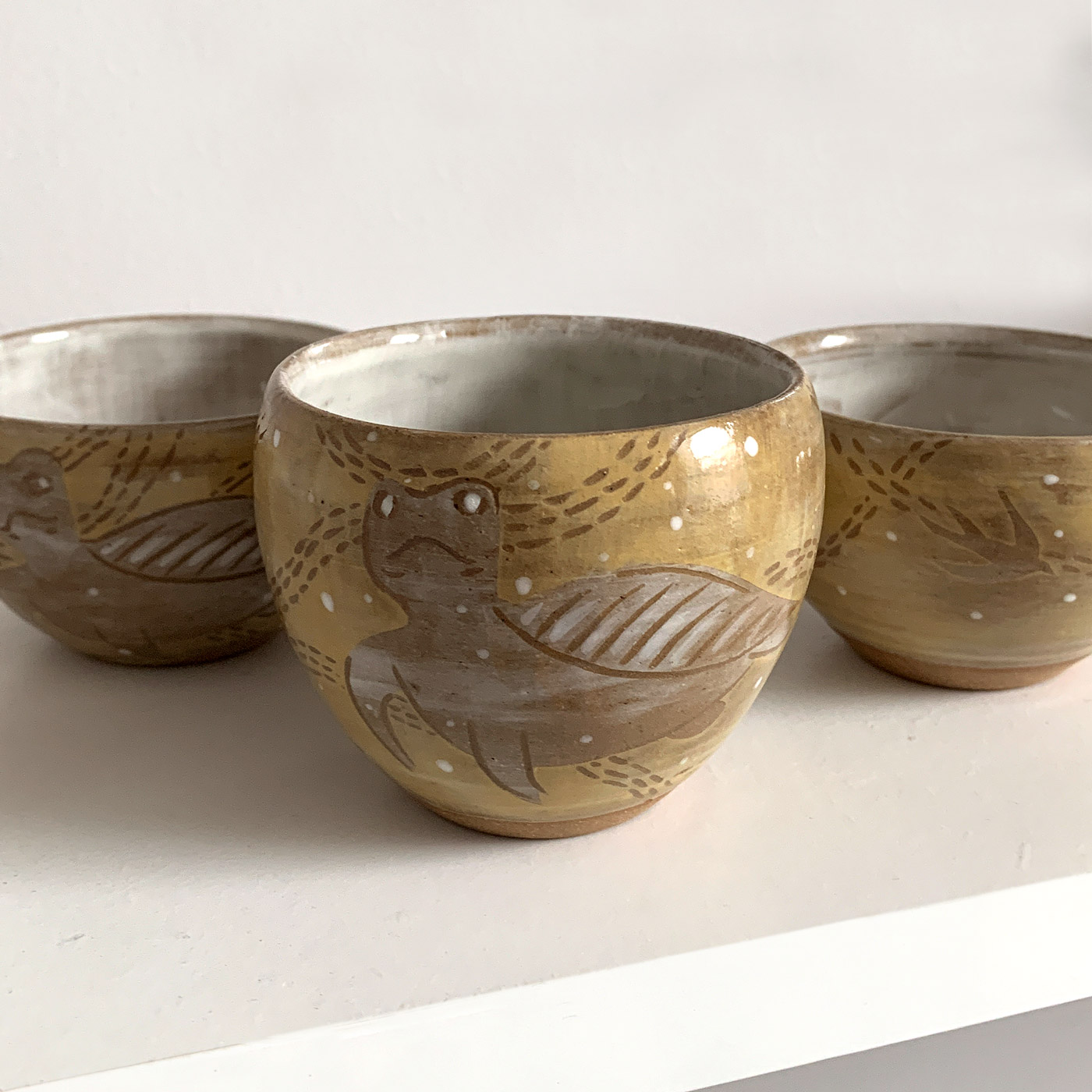 Deux avec motif de tortue, un avec oiseaux