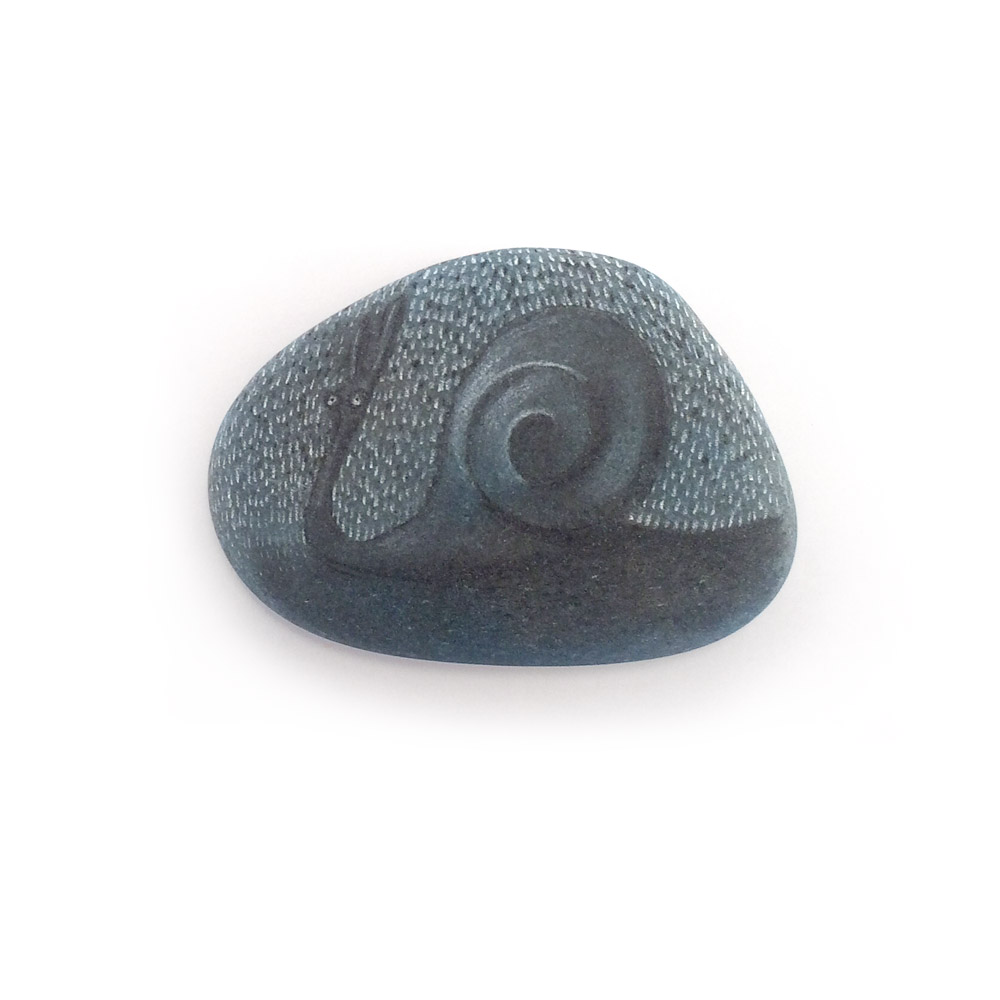 Un dessin au pastel sur une pierre provenant des berges de la Gaspésie (Québec).